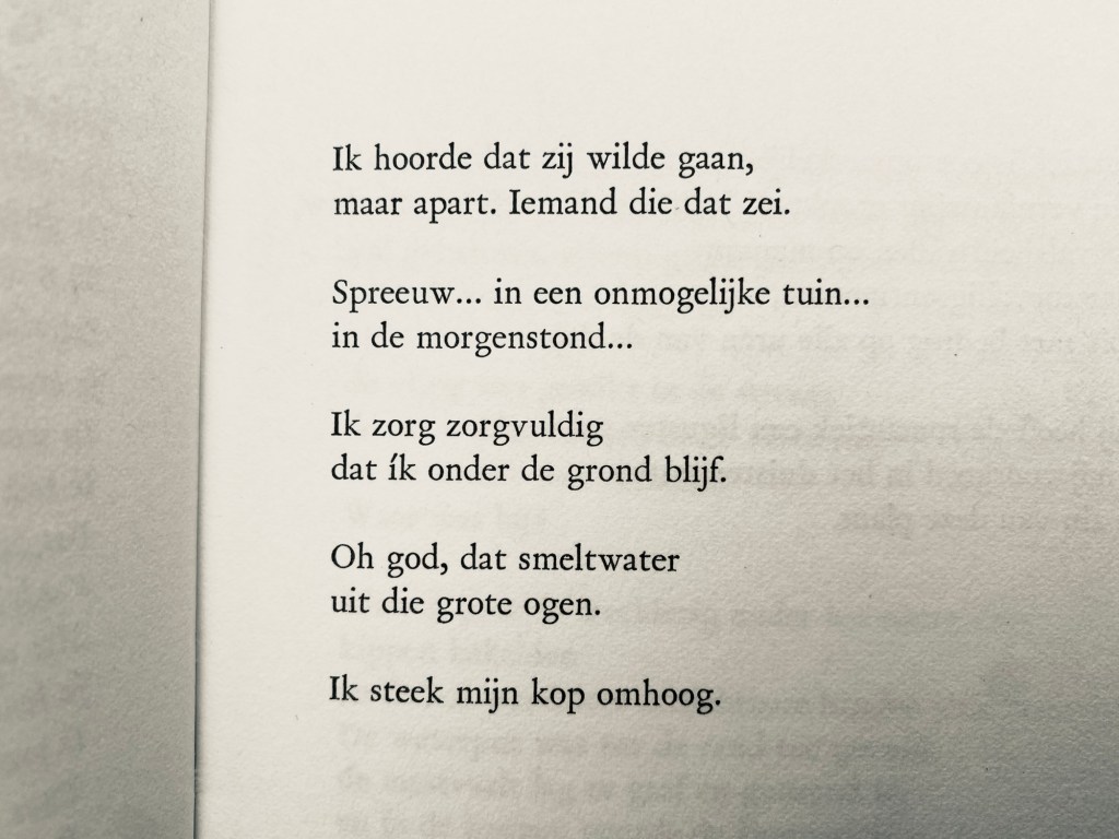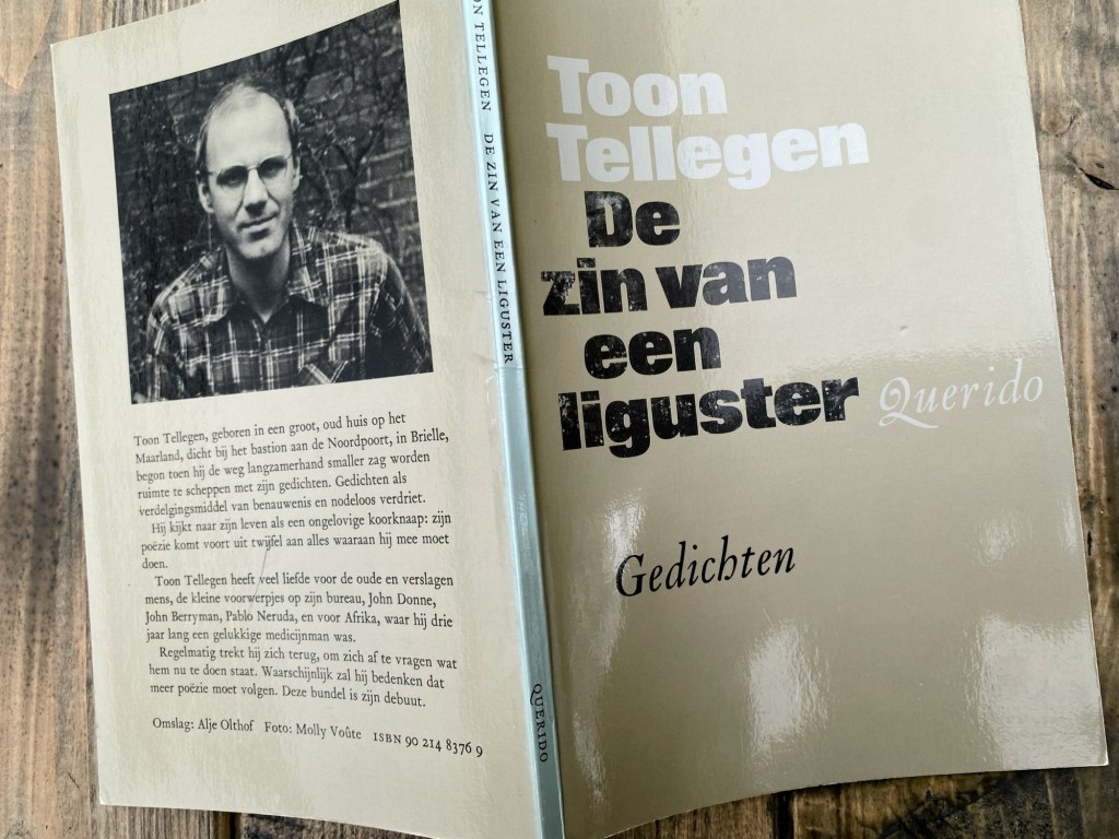 Toon Tellegens debuutbundel De zin van een liguster (1980) opent met een gedicht waarin het draait om een vogeltje dat op het punt van uitvliegen staat. De ik-figuur, die dit moment niet missen wil, stelt zich verdekt op en kijkt. Maar er zou meer aan de hand kunnen zijn. Want misschien is Spreeuw wel een koosnaam voor een dochter die voor het eerst alleen van huis vertrekt. En wat sowieso ook uitzwermt is een verzameling gedichten, waarvan het openingspoëem de allereerste is. En dat wil de dichter meemaken, al zou hij zich het liefst aan de receptie van zijn werk onttrekken.
