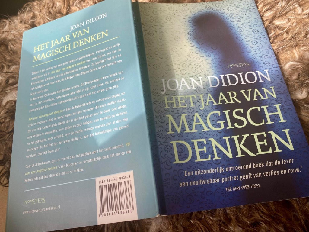 Joan Didions veelgeroemde Het jaar van magisch denken, dat ik momenteel lees, staat me tegen. Bladzijde na bladzijde nam mijn ergernis toe. Ik val over het acceptatieprobleem dat ze heeft met de dood van haar echtgenoot. Dat ze een klap heeft gekregen, begrijp ik, maar de grote moeite die ze vervolgens heeft om het gebeurde te aanvaarden, irriteert me: kom op, leven is lijden. Ben ik hardvochtig, voel ik te weinig mee? Iedereen heeft recht op zijn of haar eigen rouwproces, en mijn naasten zal ik daarin steunen, maar Didions boek, dat nog geen twee jaar na de dood van haar man verscheen en een bestseller werd, leg ik nu toch definitief weg.